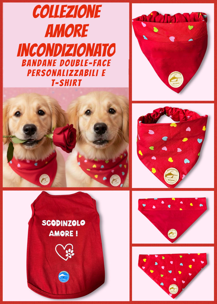 Esistono sentimenti che non hanno bisogno di parole, ma solo di uno sguardo e di un gioioso scodinzolio. Per celebrare questo legame puro, abbiamo creato la collezione "Amore Incondizionato": una selezione esclusiva dedicata a chi considera il proprio cane non solo un animale domestico, ma una parte essenziale della propria vita.