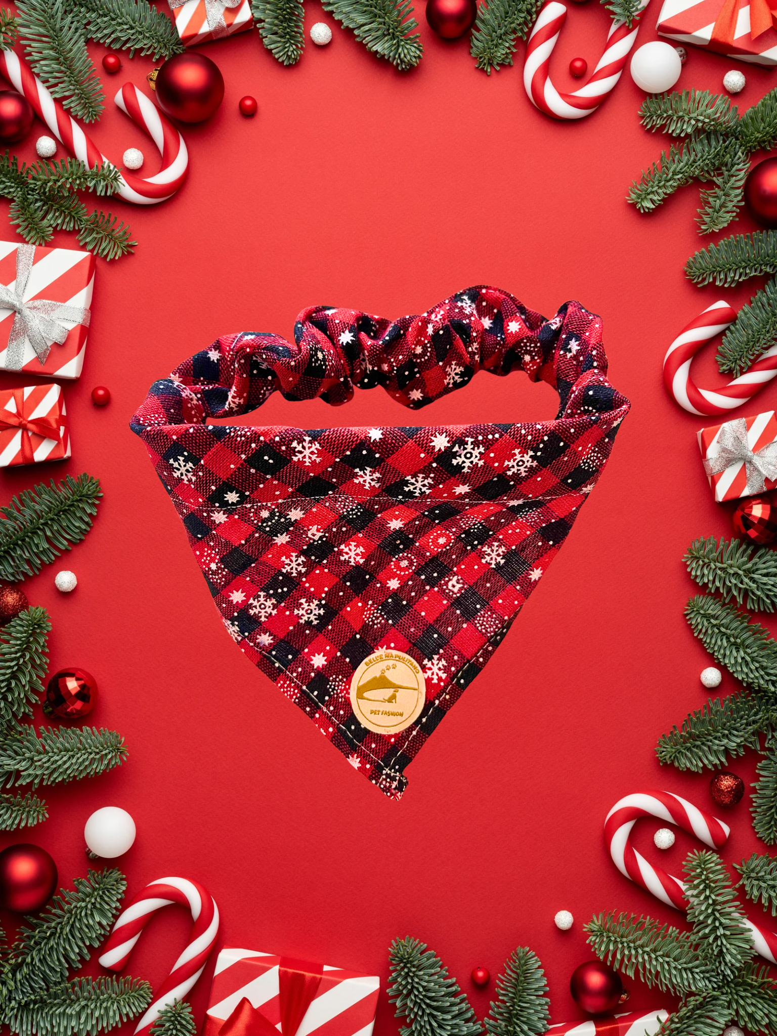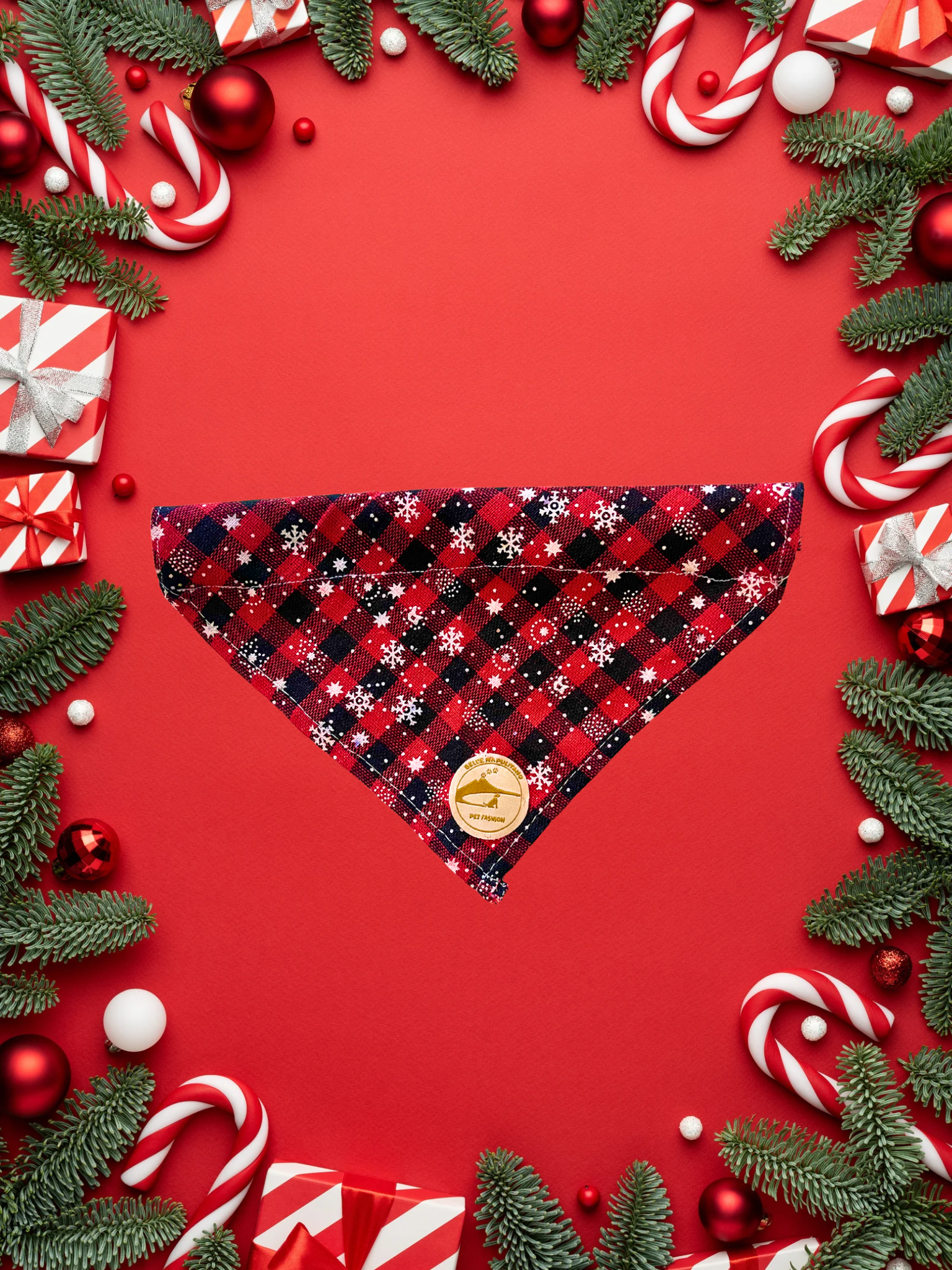 Acquista ora la Bandana a Quadretti Nero & Rosso con Fiocchi di Neve per il tuo cane!