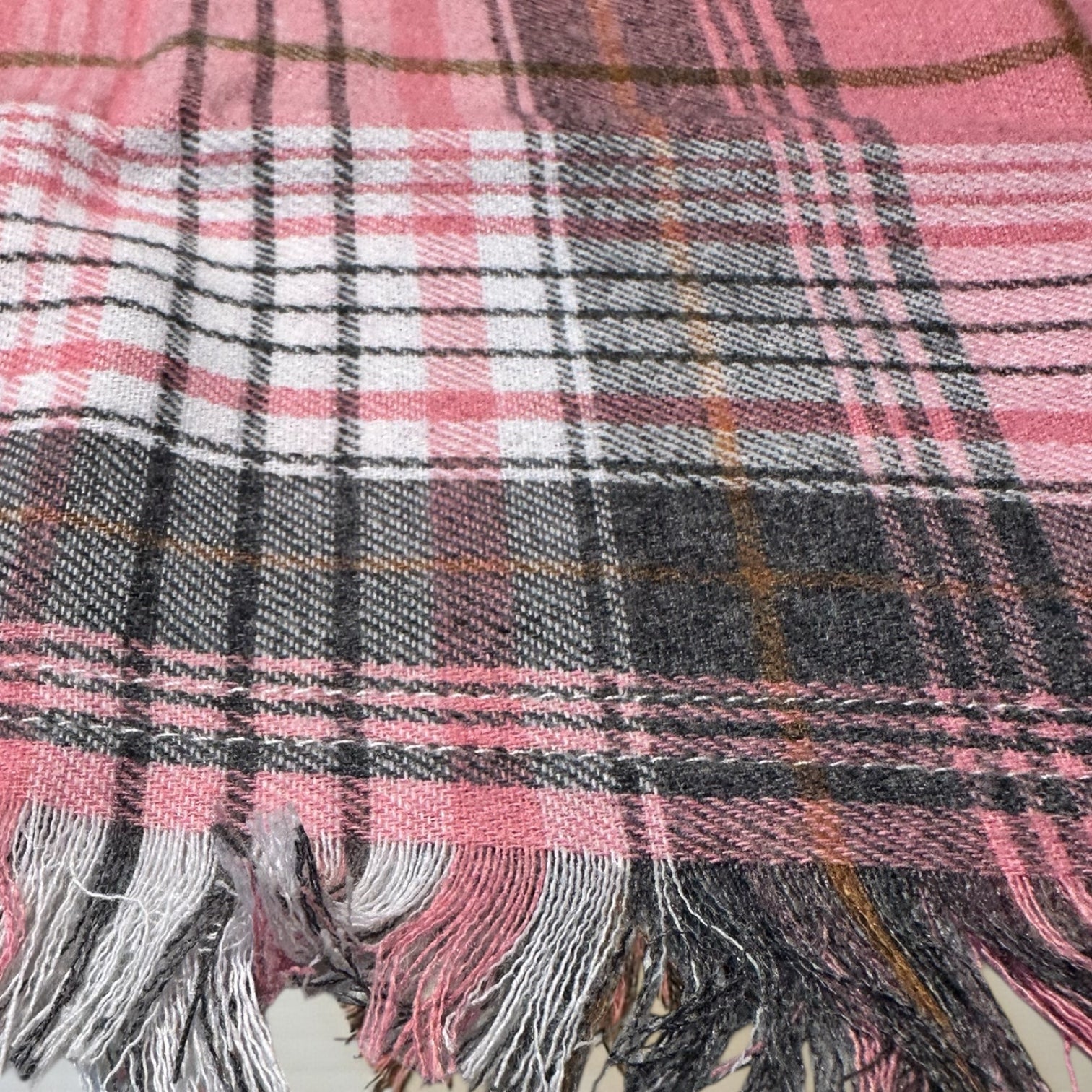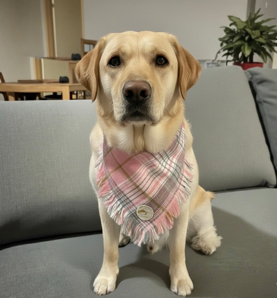 Bandana Cane tartan Invernale Morbida e Calda - Sfrangiata (Rosa/Grigio/Beige)
