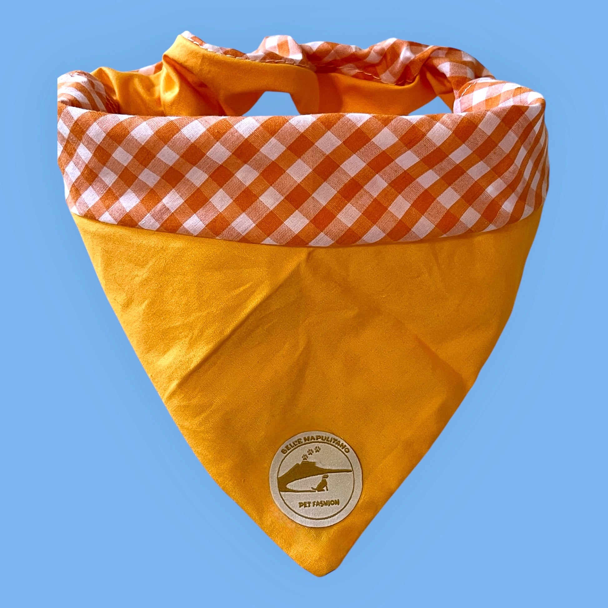 Eleva lo stile del tuo cucciolo con la nostra esclusiva bandana per cani sartoriale double-face. Realizzata in puro cotone, unisce l'eleganza artigianale alla massima versatilità. Perfetta per chi cerca una bandana arancione unica e due stili in uno.