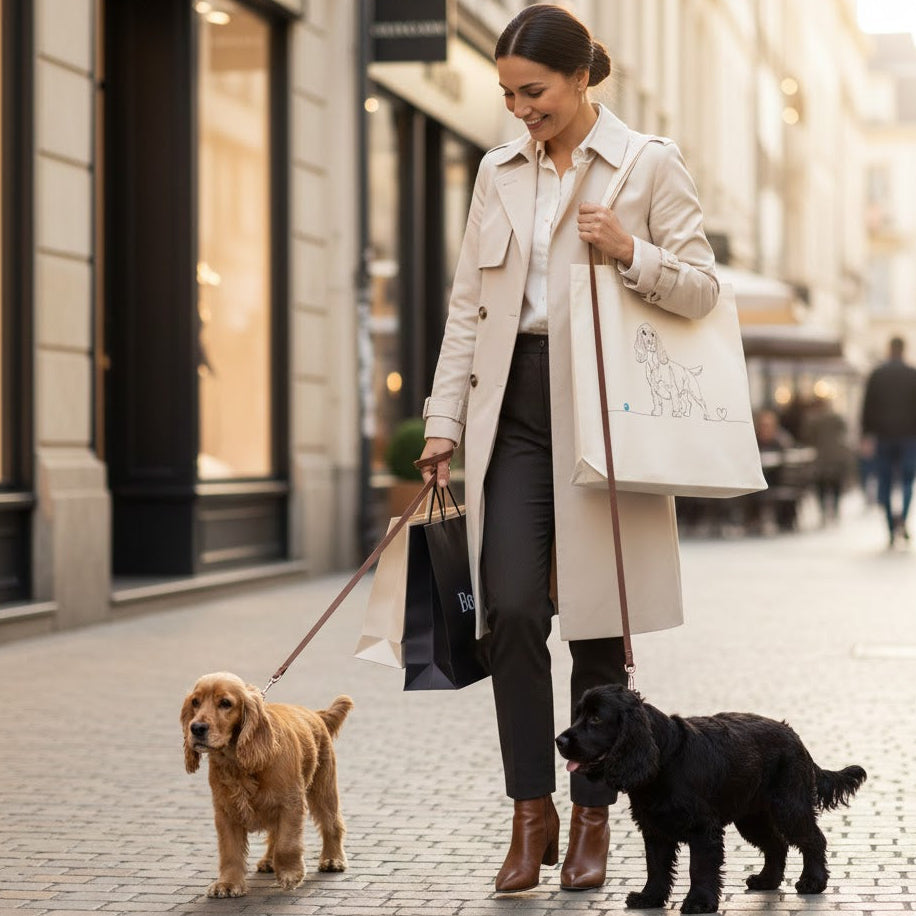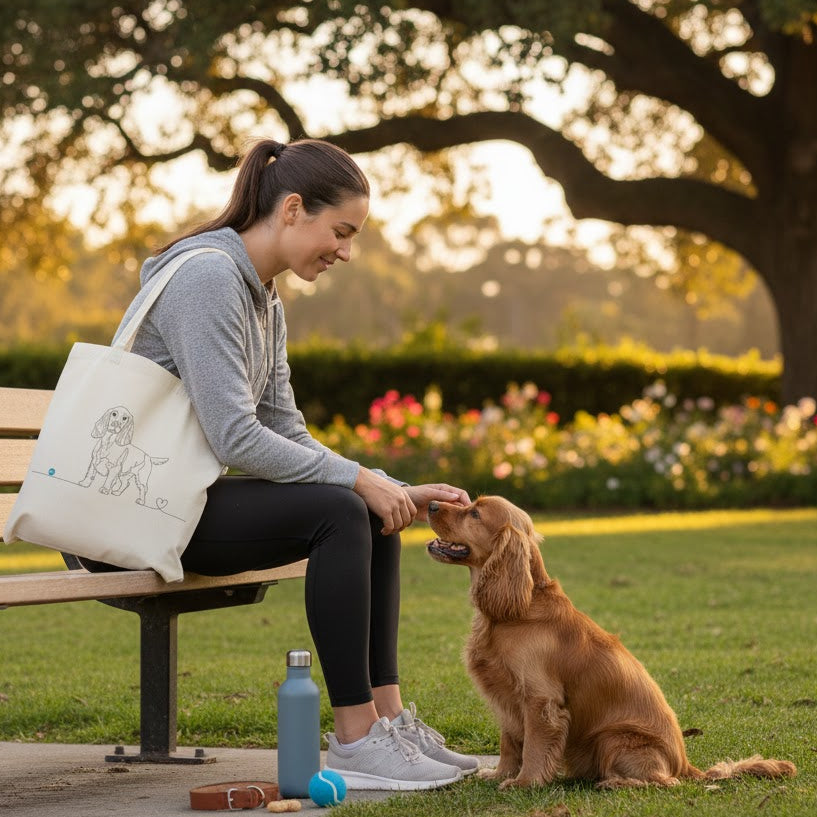 Eleva il tuo stile quotidiano con un tocco di dolcezza e minimalismo. La nostra Tote Bag Cocker unisce la praticità di una borsa versatile all'eleganza di un design Line Art esclusivo: il profilo inconfondibile di un Cocker che si chiude in un cuore pulsante.