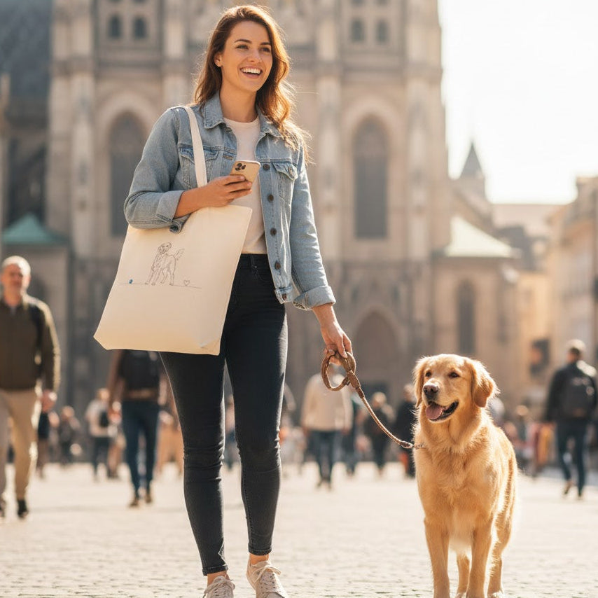 Dimentica le solite borse in plastica. La nostra Tote Bag Golden Retriever non è solo un accessorio, ma una dichiarazione di stile e amore per i nostri amici a quattro zampe. Caratterizzata da un raffinato disegno Line Art minimalista, questa borsa cattura la sagoma inconfondibile del Golden Retriever con un tratto moderno e sofisticato, perfetto per ogni occasione: dalla spesa in centro alle giornate in ufficio o all'università.