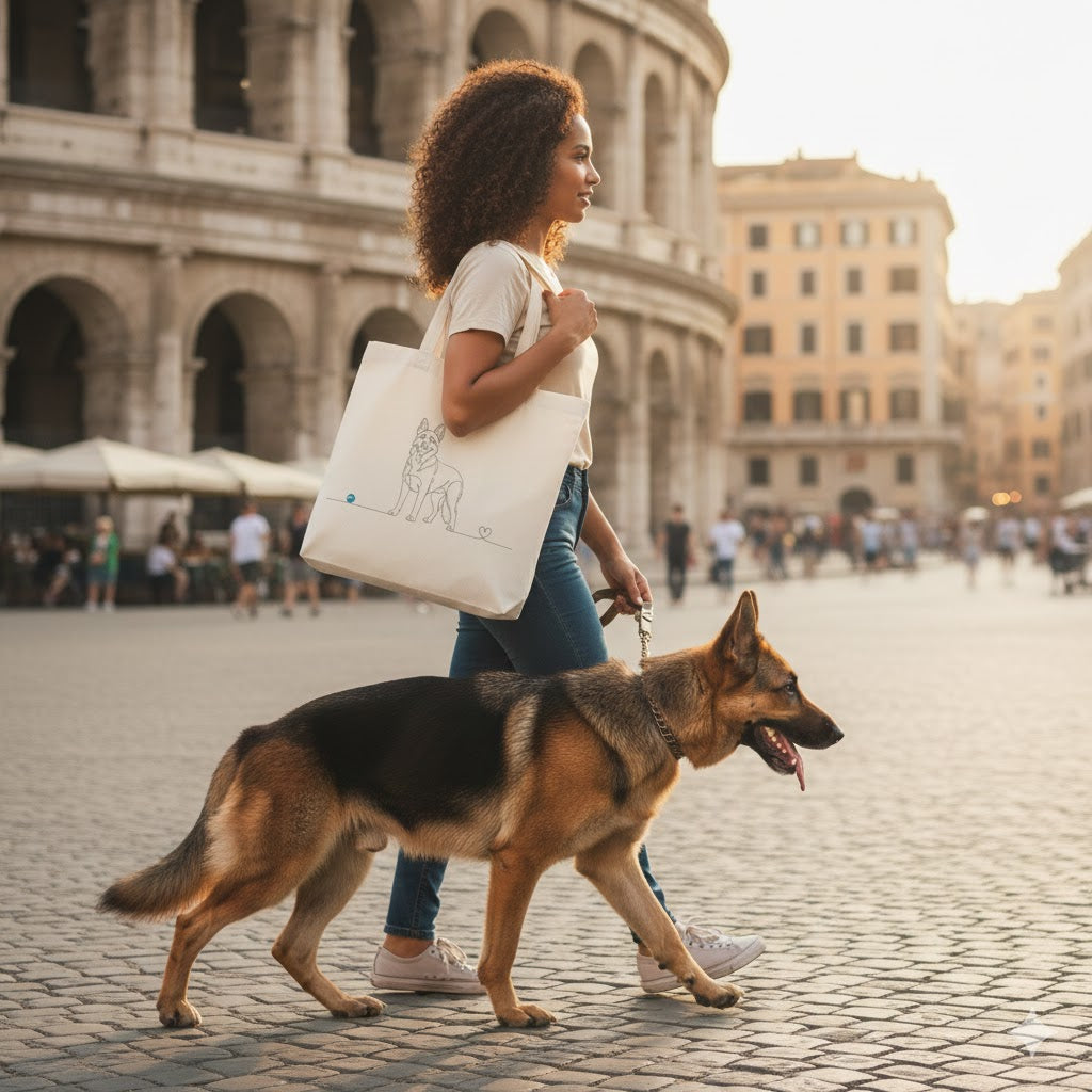 Rendi speciale ogni tua uscita con la nostra borsa in cotone dedicata a chi ha un Pastore Tedesco nel cuore. Caratterizzata da un raffinato design Line Art, questa tote bag cattura l'essenza e la fierezza del tuo compagno a quattro zampe con un unico tratto continuo che sboccia in un piccolo cuore pulsante. È l'accessorio perfetto per chi cerca eleganza, praticità e un messaggio profondo.