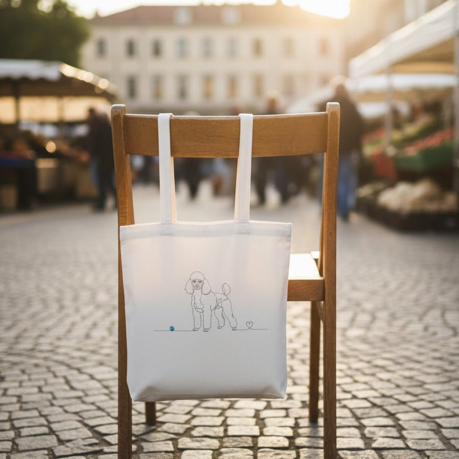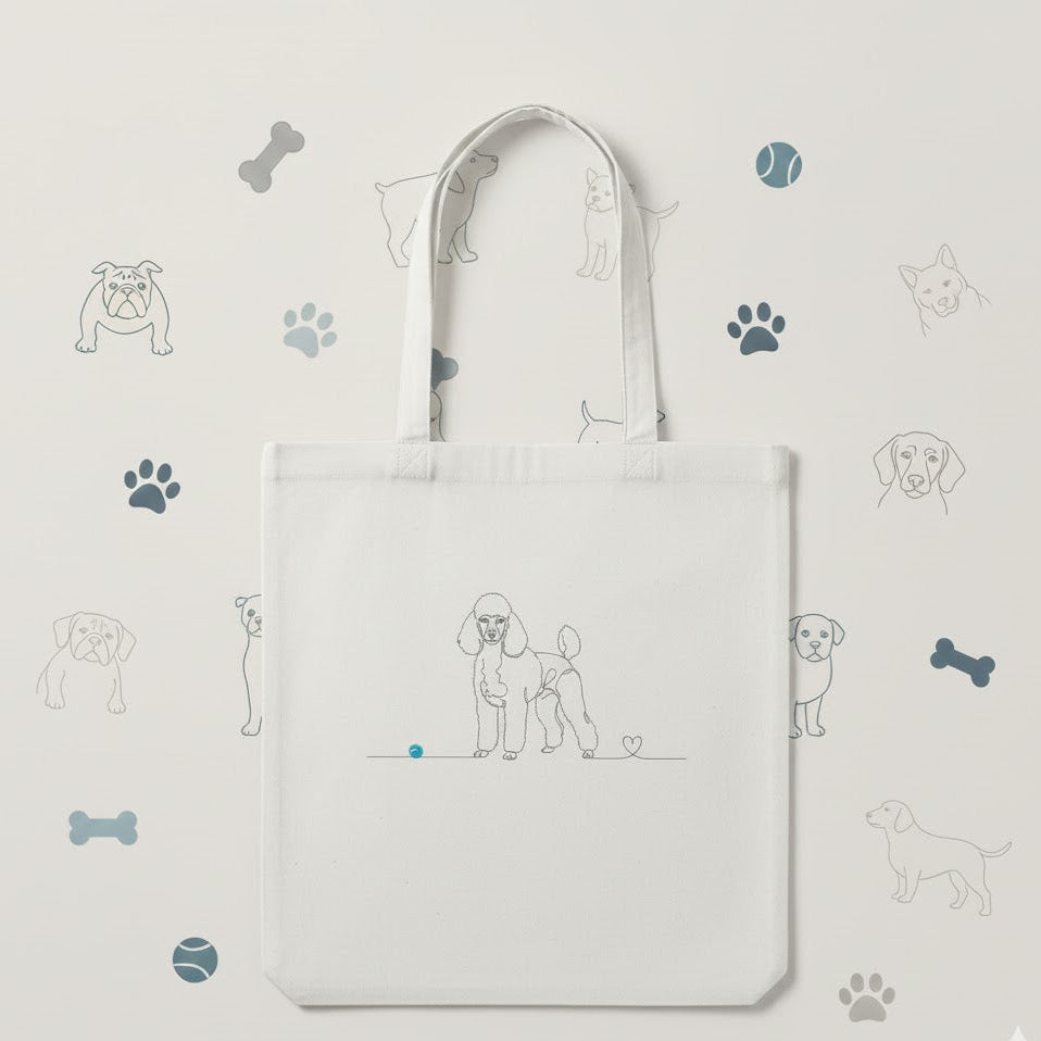 Porta l'amore per il tuo Barboncino sempre con te! Tote Bag in cotone 38x42cm con esclusivo design Line Art e cuore. Resistente, eco-friendly e in edizione limitata.