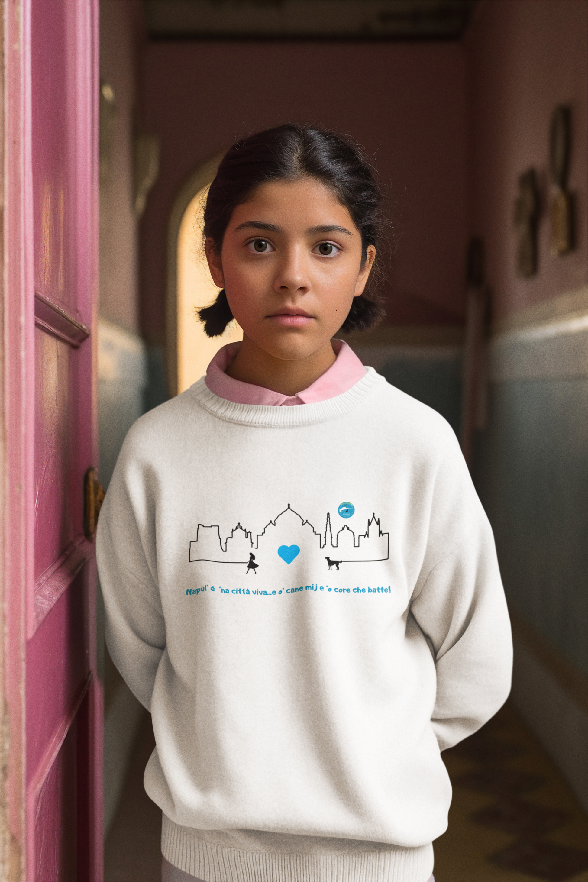 Felpa Bambina "Skyline Napoli & Cane" – 80% Cotone, Sicurezza REACH & Design Esclusivo