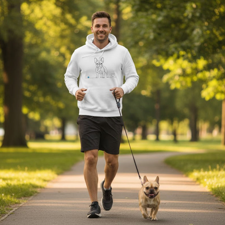 Porta sempre con te il tuo Bulldog Francese con la felpa "Legame Infinito". Cotone Ringspun, design Line Art unico e certificazione Vegan. Edizione Limitata – Acquista ora!