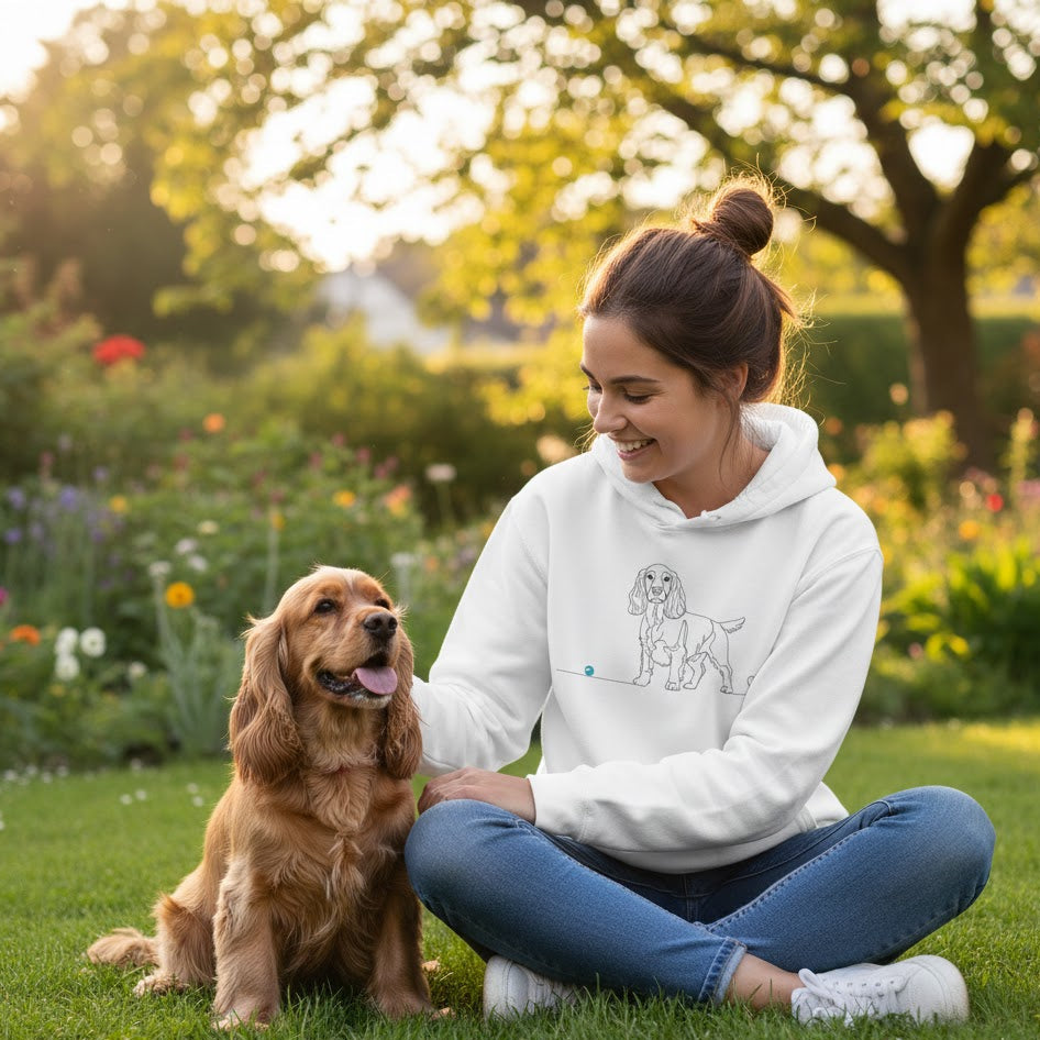 Felpa Unisex con Cappuccio - Cocker e cuore - Line Art
