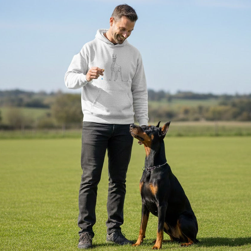 Felpa Unisex con Cappuccio - Dobermann e cuore - Line Art