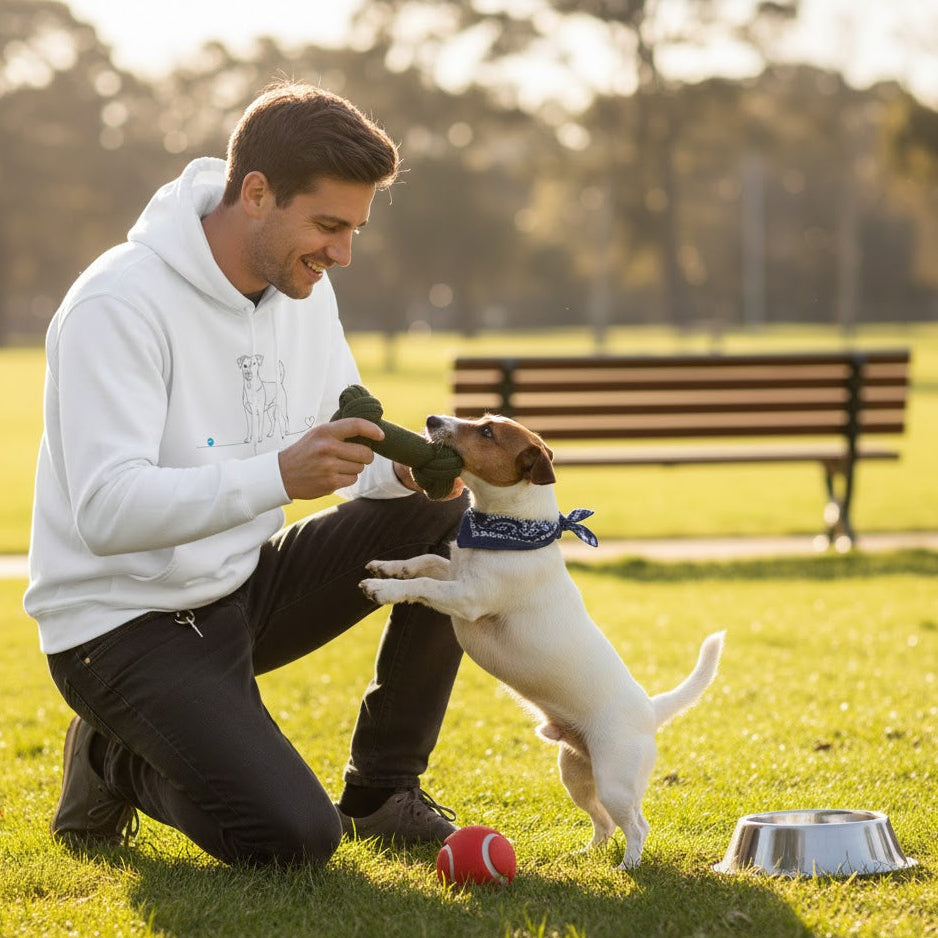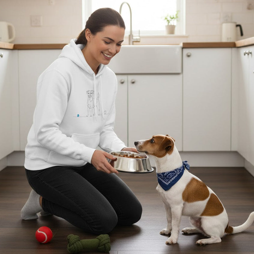 Sei un fiero proprietario di un Jack Russell? Allora conosci bene quel mix di vivacità e amore infinito che solo questa razza sa regalare. La nostra felpa della collezione "Legame Infinito" celebra questo spirito unico con un design minimalista a linea continua: un tratto moderno che disegna il profilo del tuo Jack Russell e si conclude con un cuore simbolico, segno di un’amicizia che non finisce mai.
