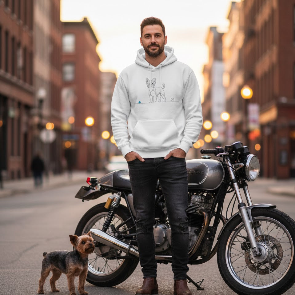 Esprime la tua personalità e il legame speciale con il tuo piccolo compagno attraverso la nostra esclusiva Felpa. Il design in line art minimalista cattura la grazia e lo spirito vivace dello Yorkshire Terrier, fondendolo in un tratto unico con un cuore delicato. Non è solo un capo d'abbigliamento, ma una dichiarazione di stile per chi ama i cani e il design d'autore.