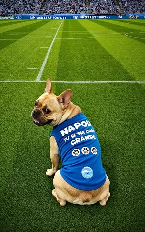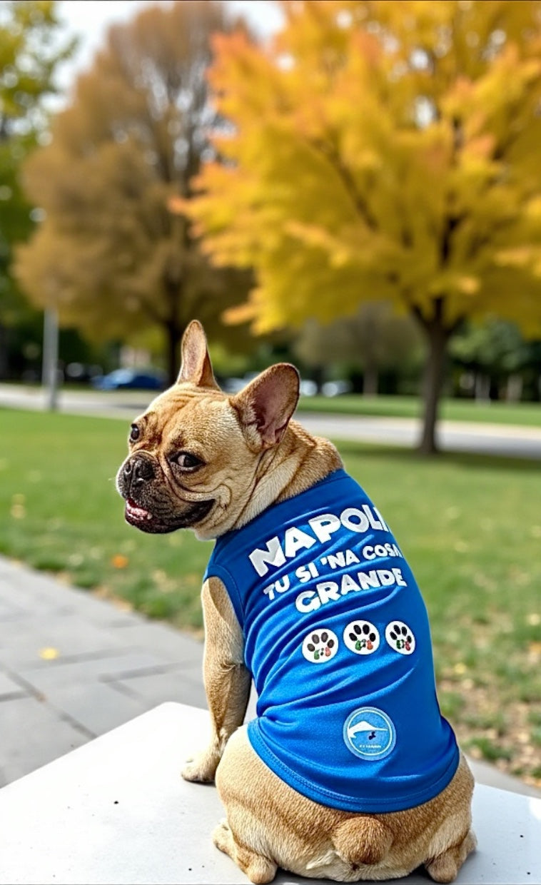 • Stampa Iconica: La celebre frase "Napoli tu si ’na cosa grande!" è stampata con cura e precisione, rendendo il tuo cane l'idolo di ogni partita.