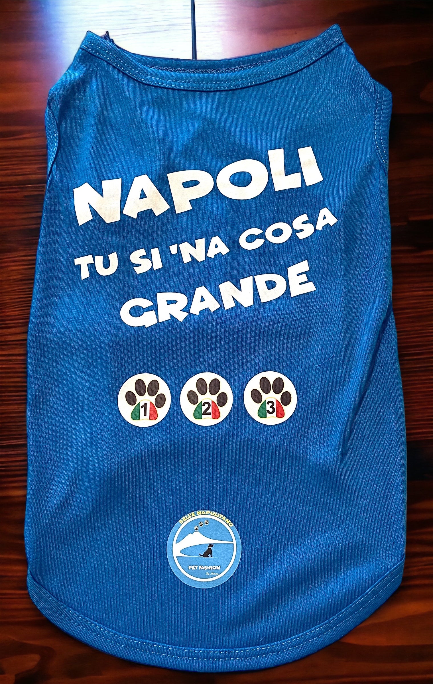 Acquista ora la maglietta Napoli per cane "Napoli tu si ‘na cosa grande" e vesti il tuo cucciolo con amore e passione!