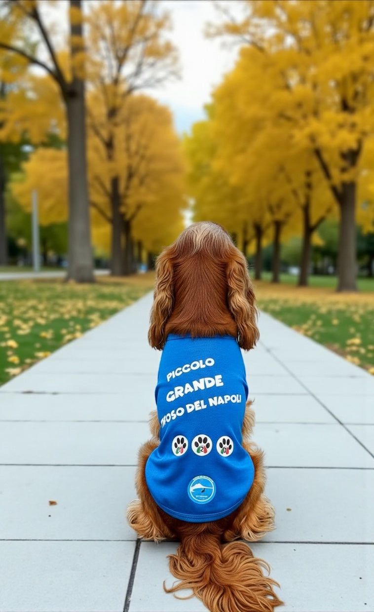 Vesti il tuo cucciolo con la passione azzurra! Le nostre magliette per cani uniscono il massimo comfort alla celebrazione del tifo partenopeo. Ideali per i piccoli tifosi del Napoli a 4 zampe.