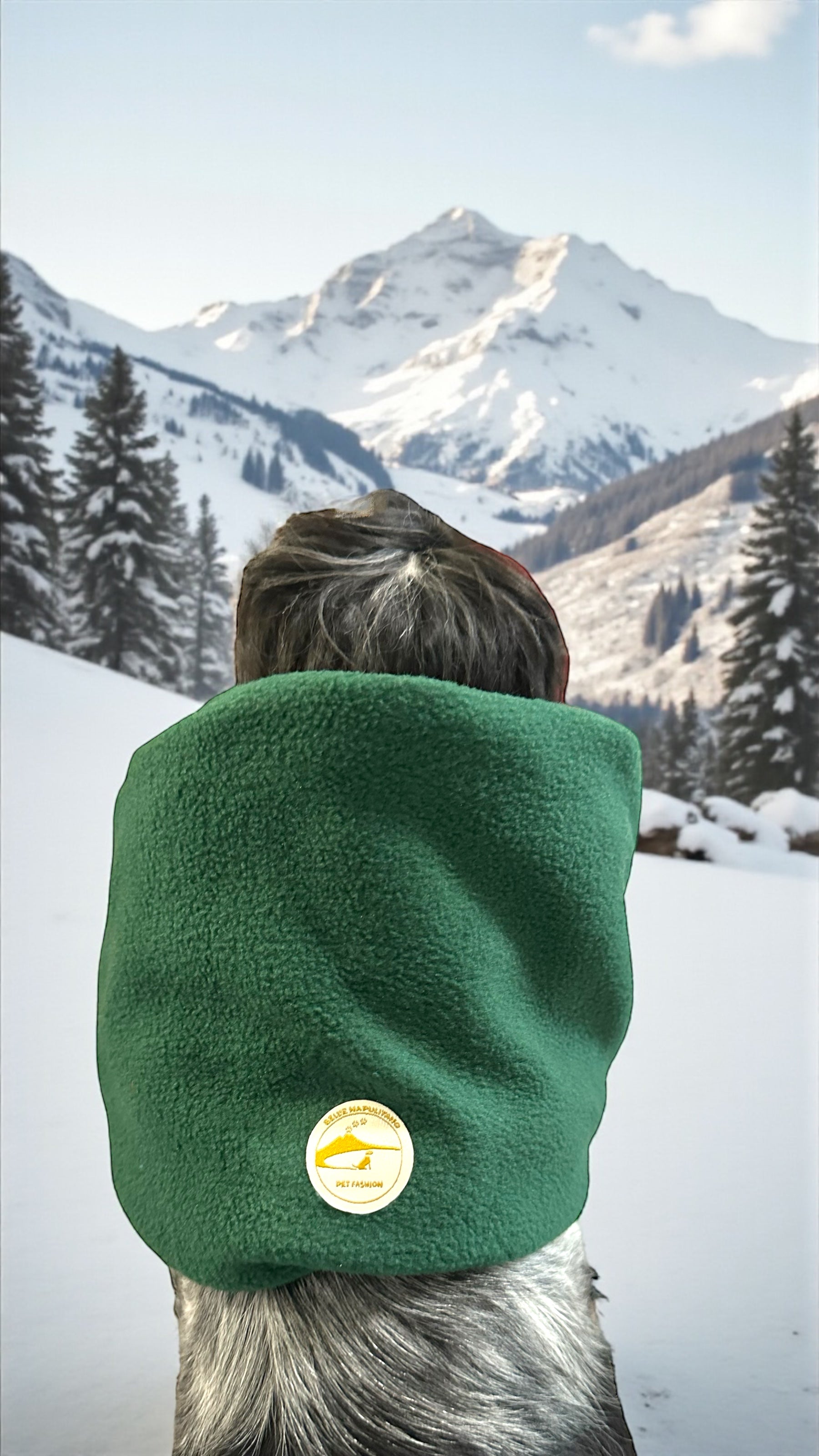 Snood sartoriale in caldo Pile (Colore Verde Bottiglia). Mantiene le orecchie pulite e calde d'Inverno. Personalizzazione GRATUITA con il nome del tuo cane. Ideale per ogni passeggiata.