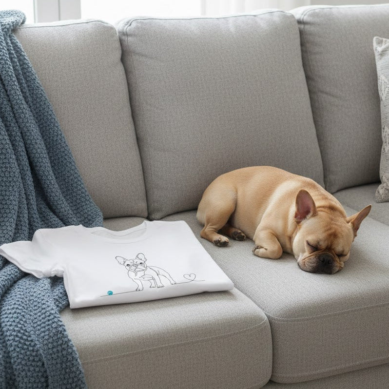 Porta sempre con te l'amore per il tuo Bulldog Francese. Ordina oggi la tua T-shirt Line Art!