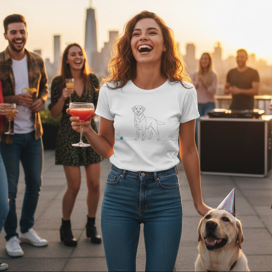 Perfetta per chi cerca uno stile raffinato senza rinunciare alla sostenibilità, questa T-shirt è il regalo ideale per ogni amante dei Retriever che desidera un capo d'abbigliamento iconico e di alta qualità.