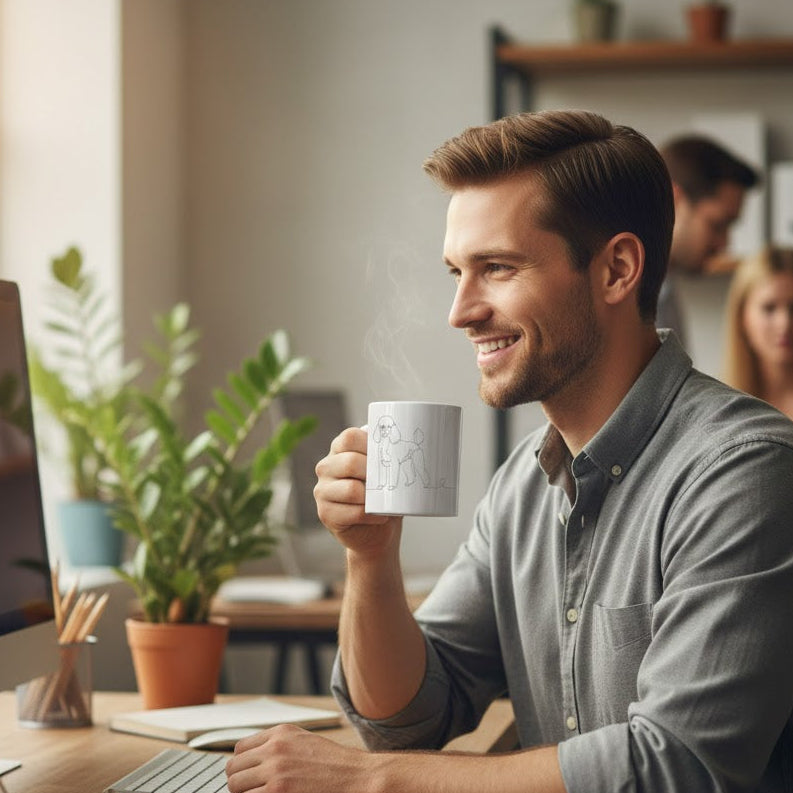 Questa tazza non è un semplice oggetto da cucina, ma un piccolo omaggio quotidiano alla gioia pura che il tuo cane porta nella tua vita. È il regalo perfetto per te o per chiunque consideri il proprio Barboncino il centro del proprio mondo.