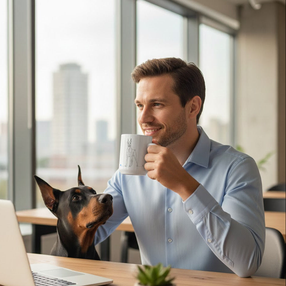 Inizia ogni giornata con l’eleganza e la lealtà del tuo Dobermann.