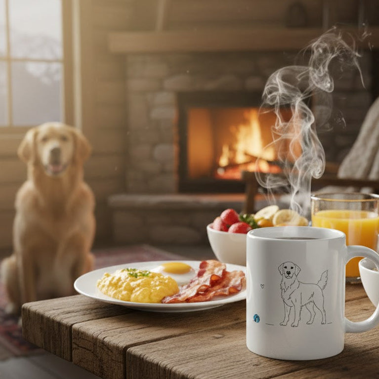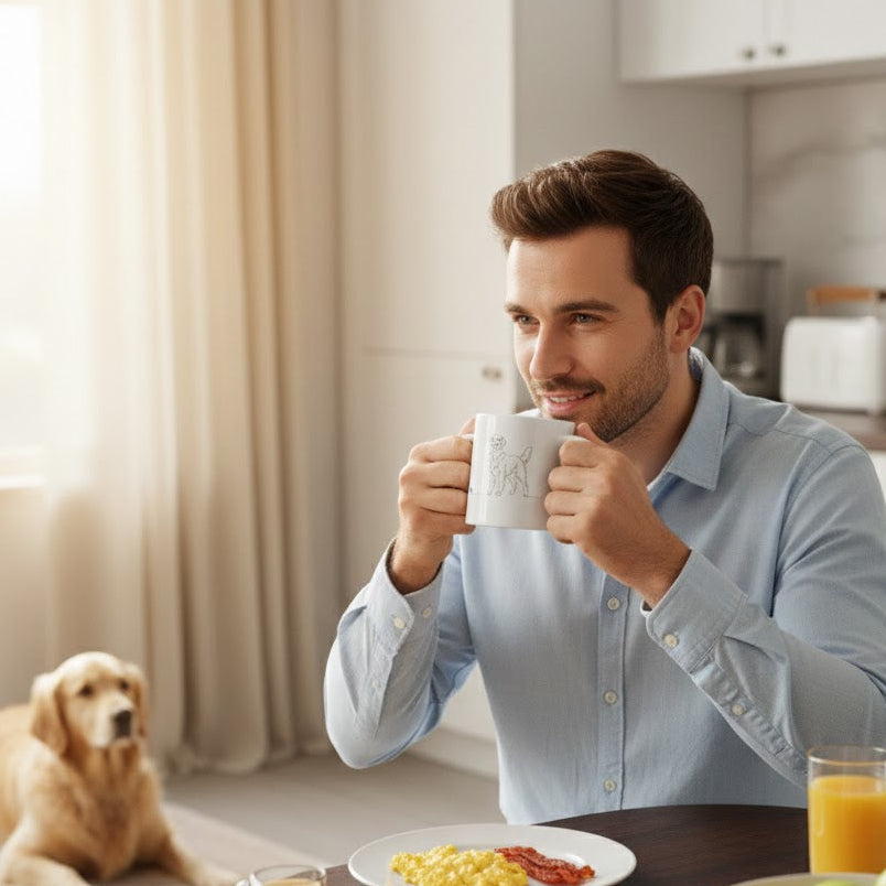 Non è la solita mug da colazione. La nostra Tazza Golden Retriever celebra la fedeltà e la bellezza di questa splendida razza attraverso un raffinato design Line Art minimalista. Un tratto nero essenziale e moderno su ceramica bianca purissima, perfetto per aggiungere un tocco di design alla tua cucina o alla tua scrivania in ufficio.