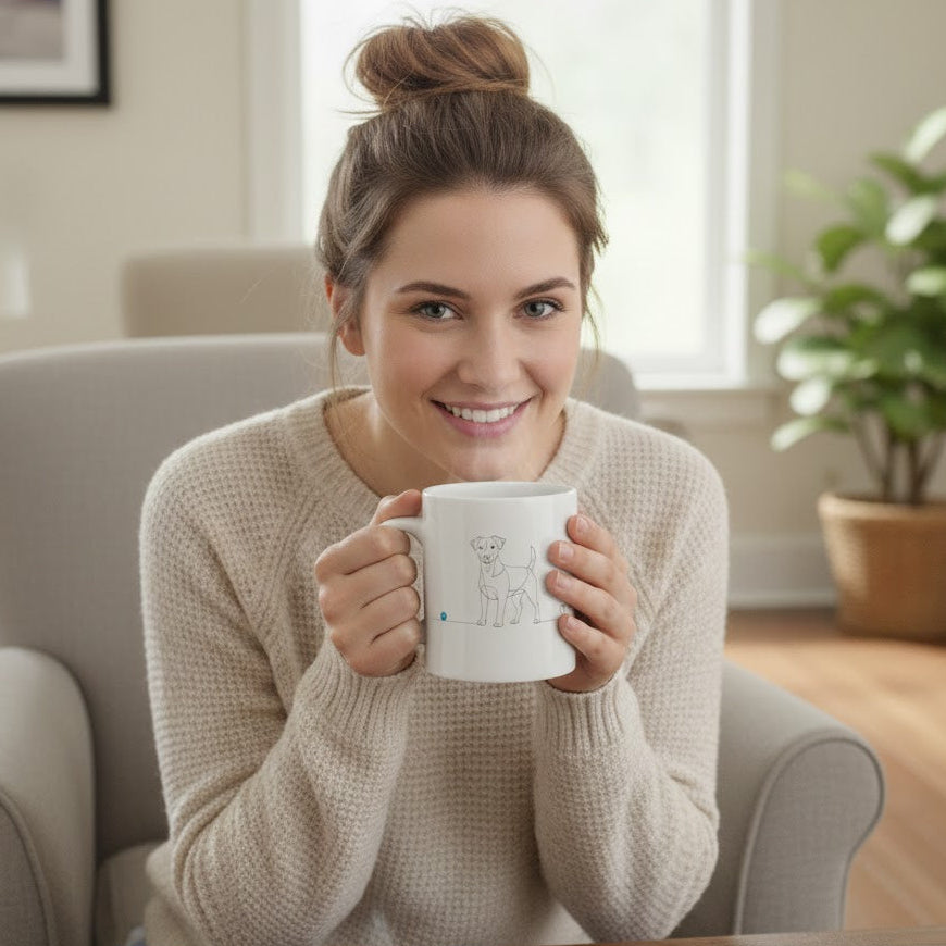 Inizia la giornata con il sorriso grazie alla nostra Mug esclusiva Jack Russell. Il design in Line Art minimalista non è solo un disegno, ma un’opera d’arte essenziale: una linea continua che traccia il profilo vivace del Jack Russell e si chiude in un cuore pulsante. È il regalo perfetto per chi porta il proprio amico a quattro zampe sempre nei pensieri, anche durante la pausa caffè o il tè pomeridiano.