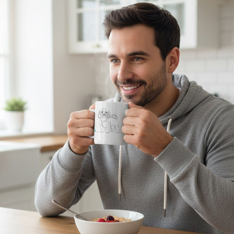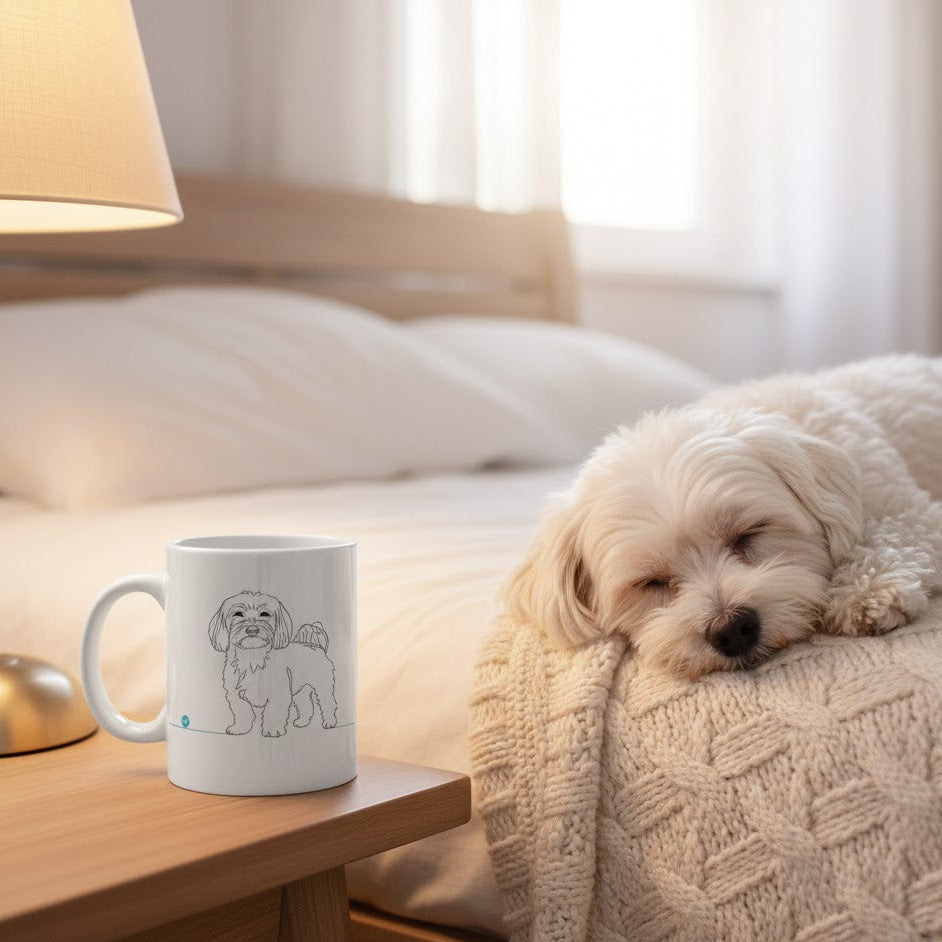 Aggiungi un tocco di eleganza e dolcezza alla tua routine quotidiana con la nostra esclusiva tazza in ceramica dedicata agli amanti del Maltese. Caratterizzata da un raffinato design line art, questa tazza cattura l'essenza e la vivacità del tuo compagno a quattro zampe con un tratto moderno e minimalista, impreziosito da un delicato cuore finale.